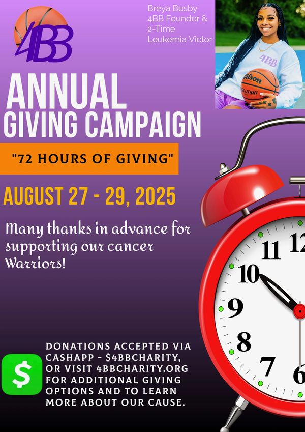 A BIG THANK YOU to those who joined in support for our 2025 Annual 4BB Giving Campaign! Every dollar raised goes towards providing gift bags with hospital stay essentials, gas and food gift cards, as well as special notes of encouragement to help them feel at home while away from home; Clinic Day Gift Bags to provide relief and distraction on infusion days; Fulfilling warrior wishlists and financial needs; 4BB Overcomer College Scholarship Fund; Respite Retreats to allow these families much needed R&R during the battle; and we are in the process of developing Horse Therapy Camps for our warriors and their siblings. We appreciate your generosity and support! We appreciate those who have given and will continue to give to this important cause and we hope that we can count on you EVERY year! Stay tuned for our 2026 dates to be announced next year!